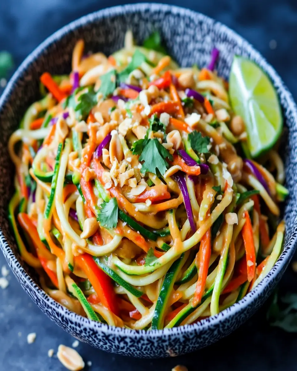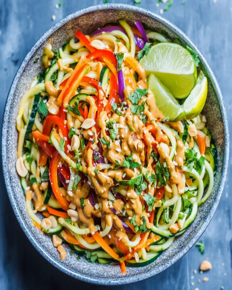The creamy peanut sauce is the star of the dish, providing a rich and nutty flavor that ties all the ingredients together. It’s what turns this zoodle bowl into a delightful Thai-inspired meal.