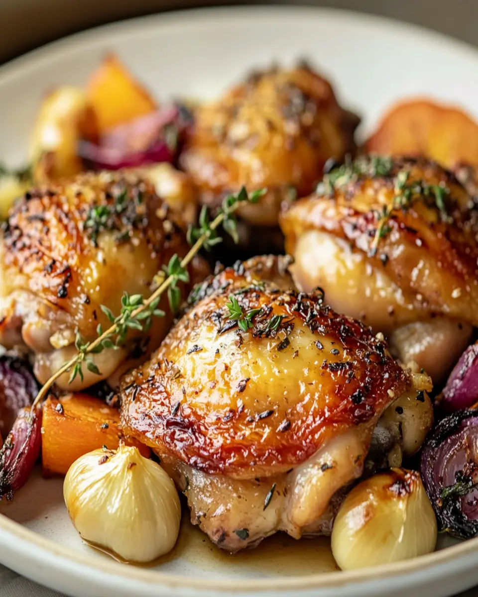 Confit Garlic & Thyme Roasted Chicken Thighs