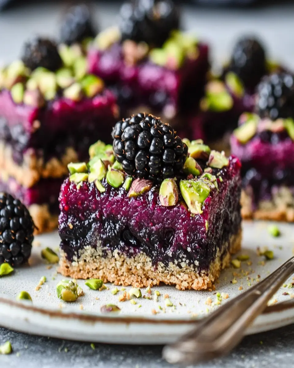 Delicious and simple Keto Blackberry Pistachio Dessert Bars, perfect for satisfying your sweet tooth while staying on track with your diet.