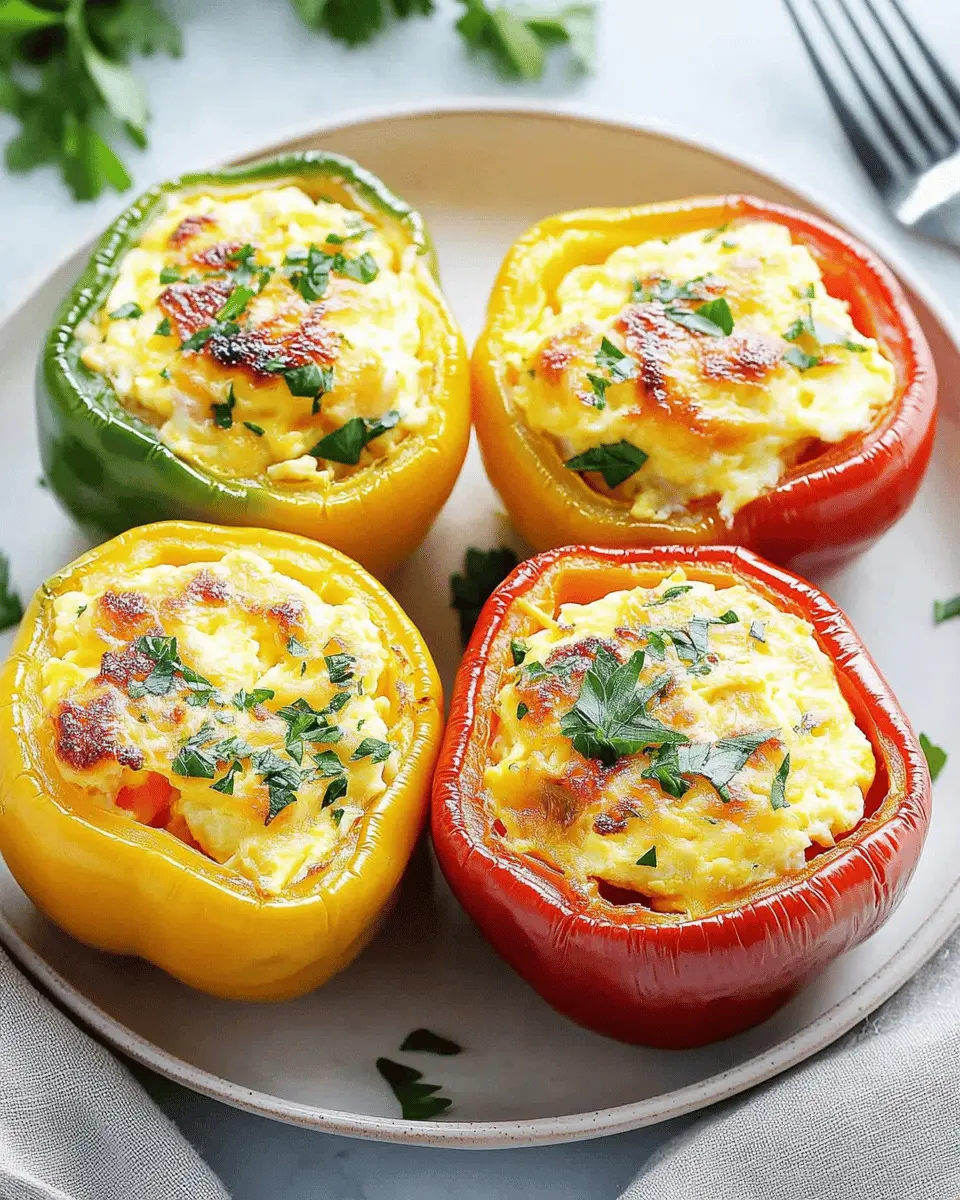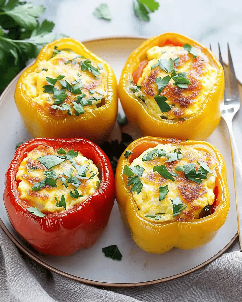 Each bite of Egg-Stuffed Bell Peppers is a delightful experience. The savory mixture of eggs, cheese, and spices creates a satisfying filling that is both hearty and comforting. Imagine the aroma wafting through your kitchen as they bake, promising a delicious meal that you can’t wait to dig into.