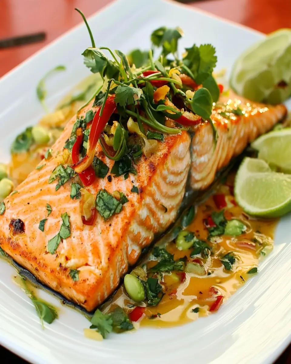 In summary, Fresh Lemongrass Basil Roasted Salmon is a vibrant and healthy dish that brings the refreshing flavors of Thai cuisine to your table. This recipe is not only quick and easy to prepare, making it perfect for busy young professionals, but it also offers a delightful culinary experience with every bite. The combination of fresh lemongrass and basil creates a unique taste that pairs beautifully with various sides, ensuring a satisfying meal. We encourage you to try this recipe, share it with friends, and enjoy the deliciousness it brings to your dining experience!