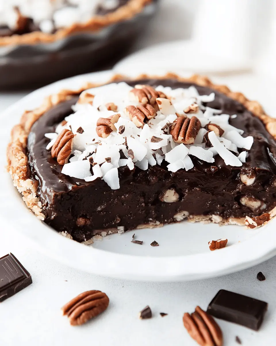 1 cup shredded coconut: Coconut adds a chewy texture and tropical flavor that complements the chocolate perfectly. It’s a signature element that distinguishes this pie from other chocolate desserts.