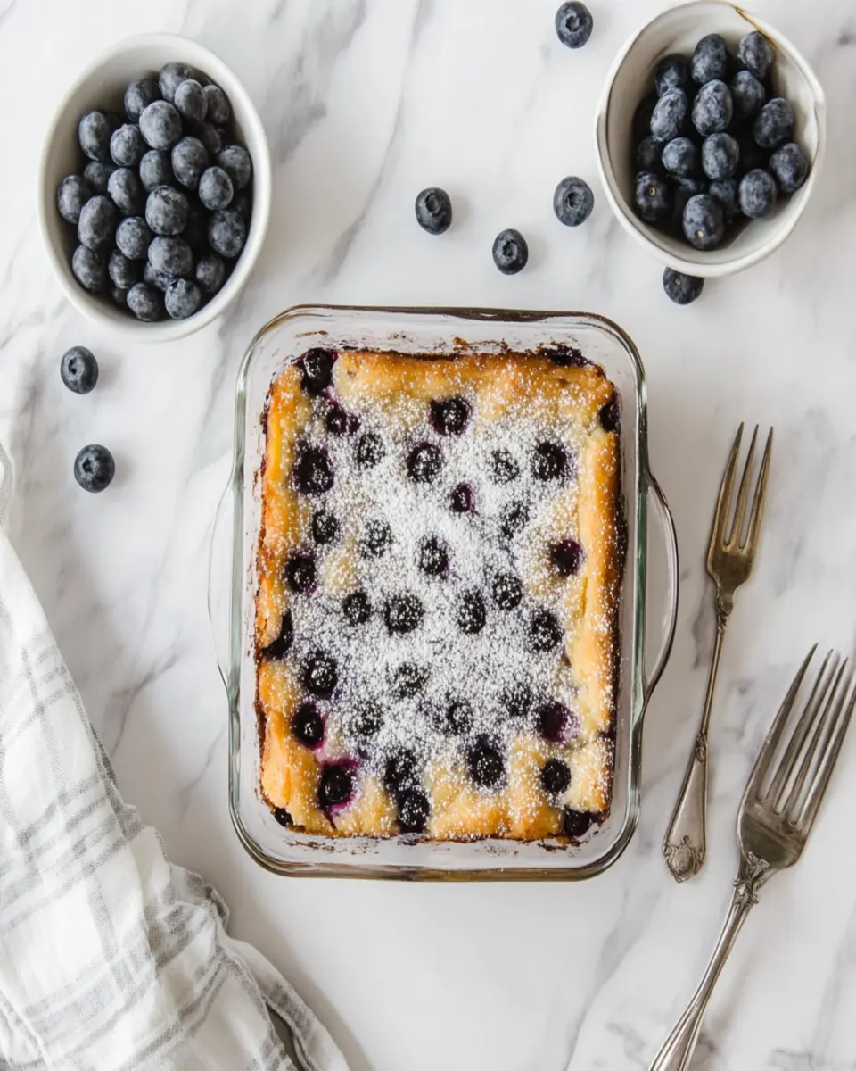 Once the batter is ready, it takes about 30-35 minutes to bake in the oven. During this time, your kitchen will fill with the delightful aroma of baking blueberries and buttery goodness.