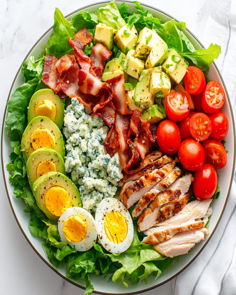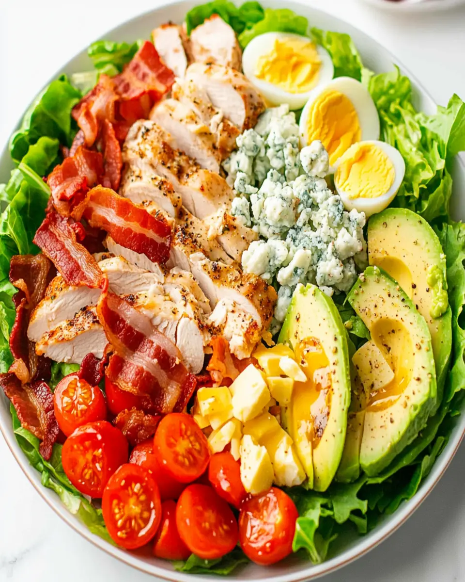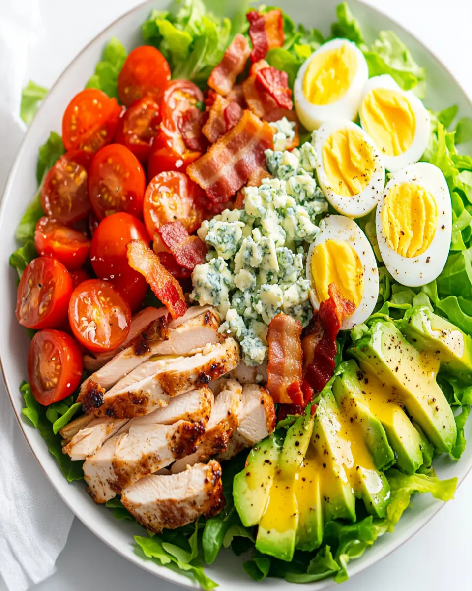 The Keto Cobb Salad is a delicious, low-carb dish that features a mix of fresh ingredients such as romaine lettuce, diced chicken, crumbled bacon, blue cheese, and avocado. It’s perfect for those following a ketogenic diet, as it offers high protein and healthy fats while keeping carbohydrates low.