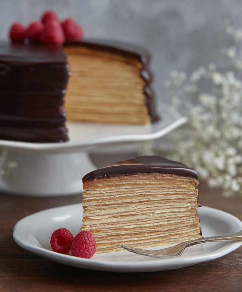 Not only is this cake delicious, but it’s also visually stunning. Layers of thin crepes combined with silky ganache create an impressive presentation that’s sure to wow your guests. Whether you’re hosting a dinner party or celebrating a special occasion, this cake is bound to be the centerpiece of your dessert table.