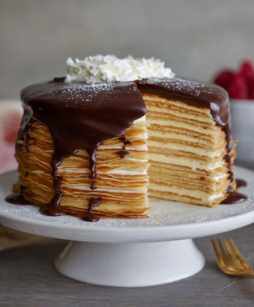 Depending on the season, you can adapt this recipe to fit festive themes. For fall, consider adding a pinch of pumpkin spice to the crepe batter or using a pumpkin puree in the ganache. In the summer, a light citrus zest can brighten the flavors and make it more refreshing.