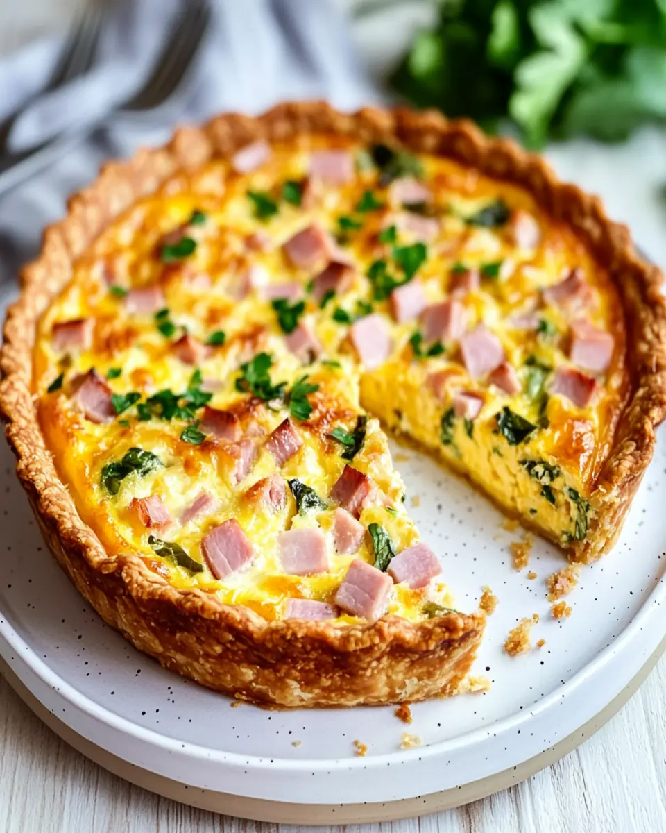 This quiche is versatile too! You can customize it with your favorite ingredients, whether that’s adding fresh vegetables or experimenting with different cheeses. The combination of rich heavy cream and eggs creates a creamy filling that pairs beautifully with the savory ham and sharp cheddar. Each slice delivers a delightful balance of textures and flavors, making it a meal you’ll look forward to time and again.