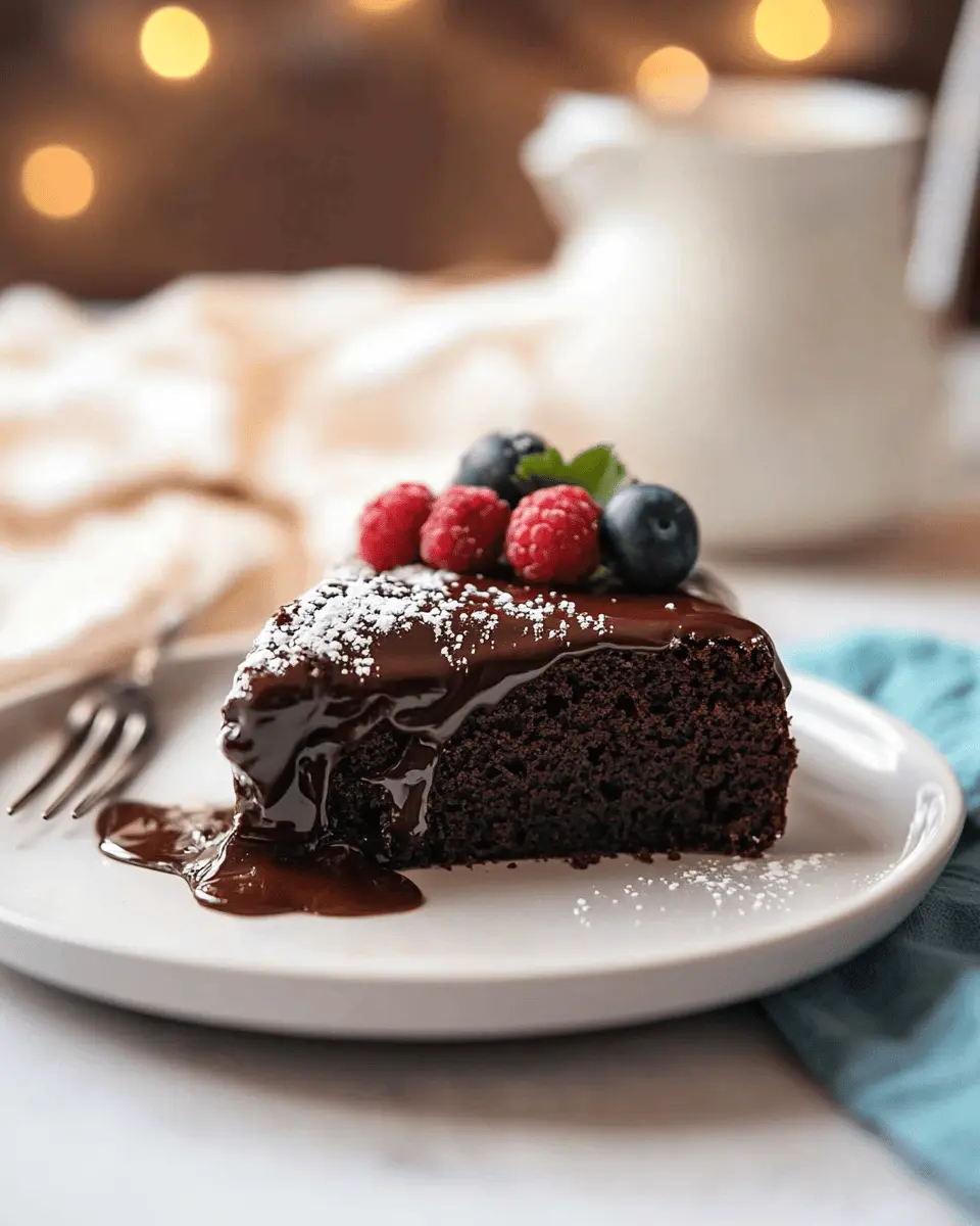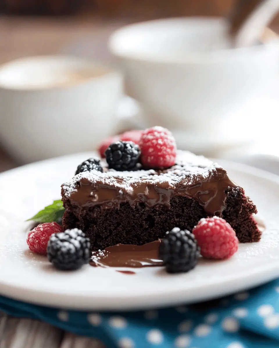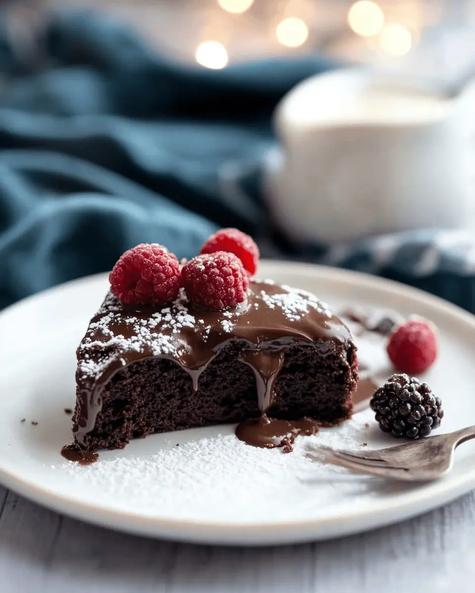 For a nutty twist, consider drizzling some almond or peanut butter over the cake. This adds a creamy element and richness that pairs perfectly with the chocolate, creating a satisfying dessert that feels indulgent without compromising your dietary choices.
