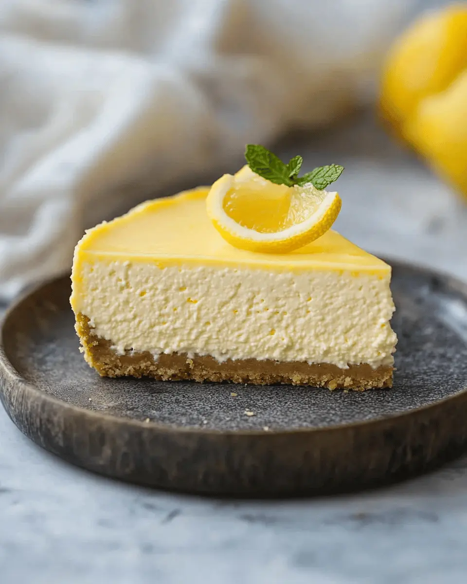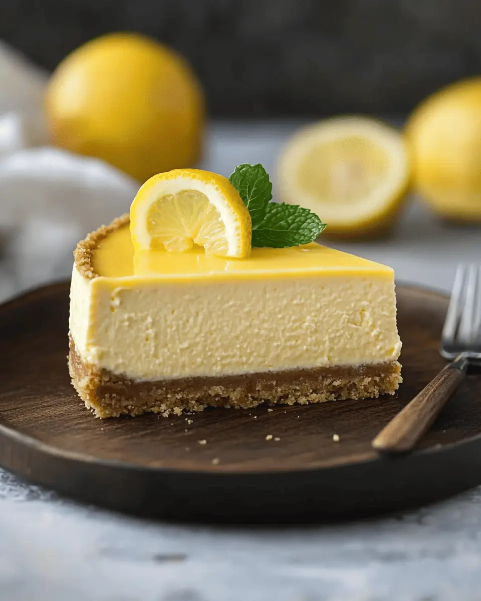 A simple yet elegant way to serve your cheesecake is by adding a dollop of freshly whipped cream on top. This adds a rich, creamy texture that complements the tartness of the lemon beautifully. You can also garnish with a few fresh berries, such as blueberries or strawberries, for a pop of color and additional flavor.