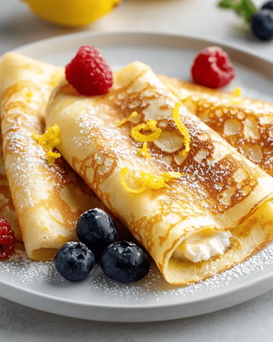 Ricotta cheese serves as the creamy base for these crepes, providing moisture and richness. Its subtle flavor complements the lemon, creating a delightful balance that enhances each bite.