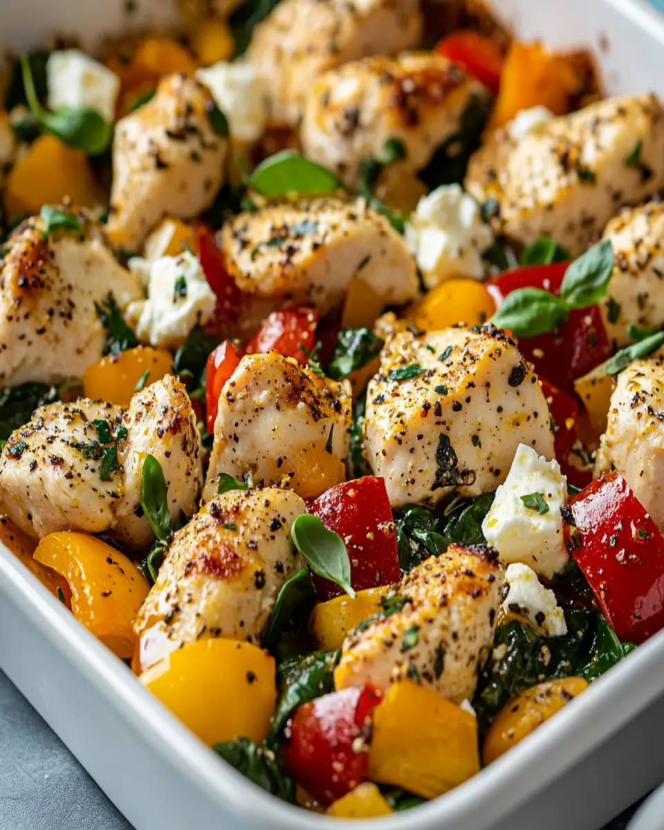 Ein leckerer und gesunder Auflauf mit Hähnchen und Feta, perfekt für eine kohlenhydratarme Ernährung.