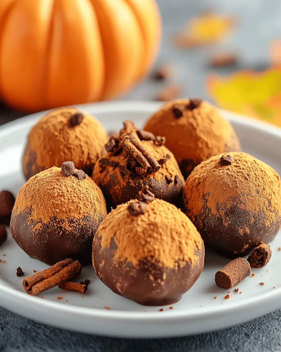 Consider pairing your truffles with a warm cup of herbal tea or coffee. The rich flavors of pumpkin and spices complement a cozy beverage beautifully, making for a perfect afternoon snack or dessert. A sprinkle of cinnamon on top of your drink can tie the flavors together nicely.