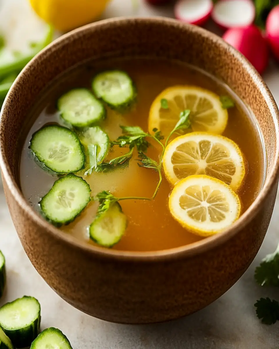 One of the key reasons you’ll love this broth is its versatility. Whether enjoyed warm on a chilly evening or chilled on a hot summer day, it adapts to your mood and needs. Additionally, this broth is packed with health benefits, thanks to the probiotic-rich miso, anti-inflammatory ginger, and vitamin C from the lemon. With each sip, you’re not just tasting a delicious drink; you’re also boosting your immunity and hydration.