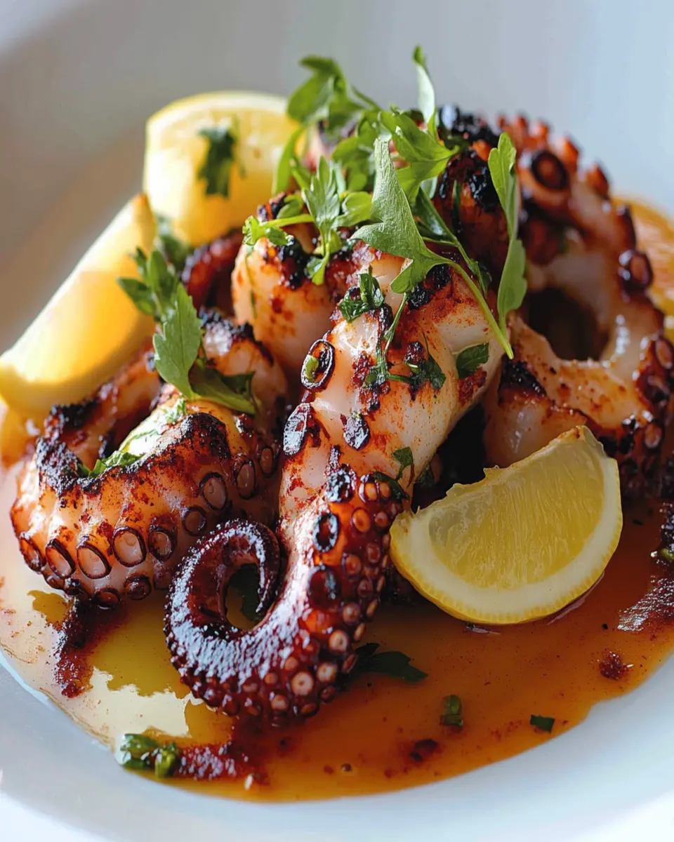 In conclusion, Octopus à la Plancha with Paprika Oil is not just a dish; it’s an experience that brings the vibrant flavors of the Mediterranean to your table. The combination of grilled octopus, infused with smoked paprika and garlic, offers a delightful taste that is both satisfying and healthy. This recipe is perfect for young professionals looking for a quick yet impressive meal that can be prepared in just 20 minutes.