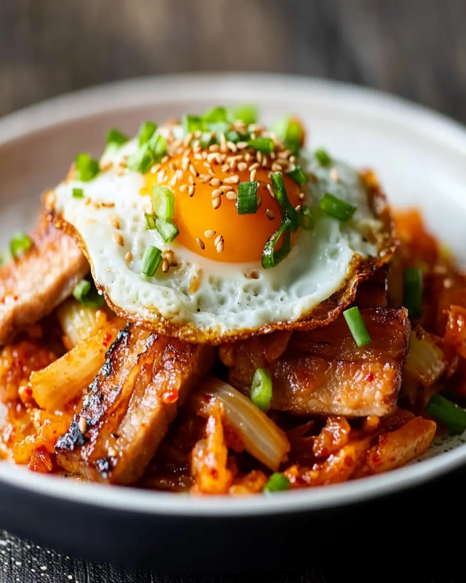 Pork Belly Kimchi Fried Egg Mess: Irresistibly Bold Delight