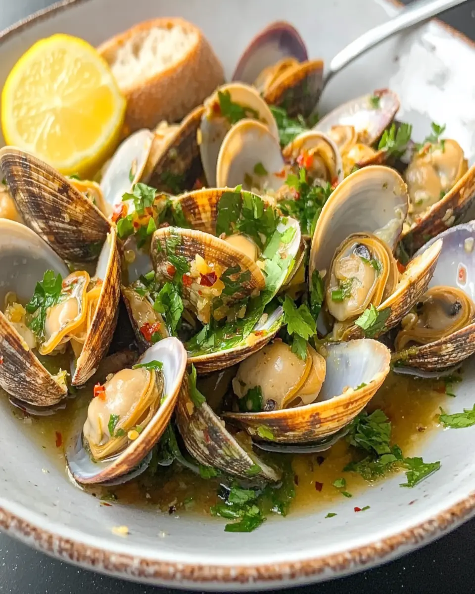 Serving your clams with crusty bread is a must, as it allows you to soak up the flavorful broth. A fresh baguette or sourdough is ideal for this purpose. Additionally, a light salad with citrus vinaigrette complements the savory clams, adding a refreshing contrast that balances the meal.