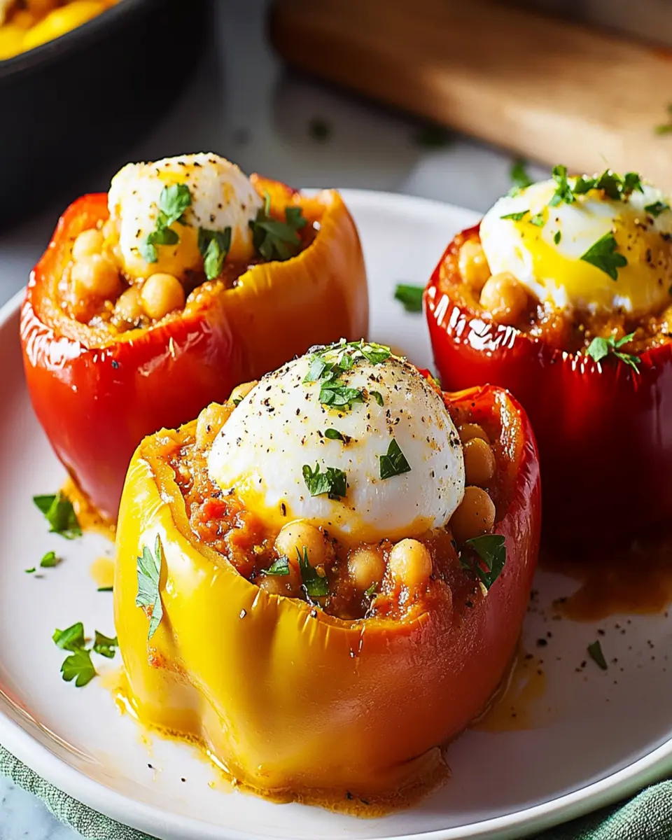 Shakshuka Stuffed Peppers are a delicious dish featuring large bell peppers filled with a savory shakshuka mixture, which includes ingredients like tomatoes, spices, and eggs. This Mediterranean-inspired recipe offers a healthy, vegetarian option that is both satisfying and flavorful.