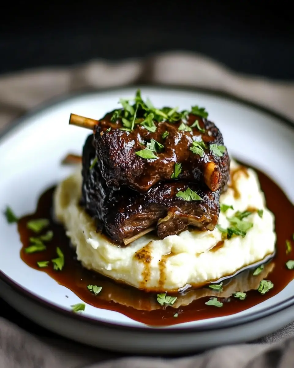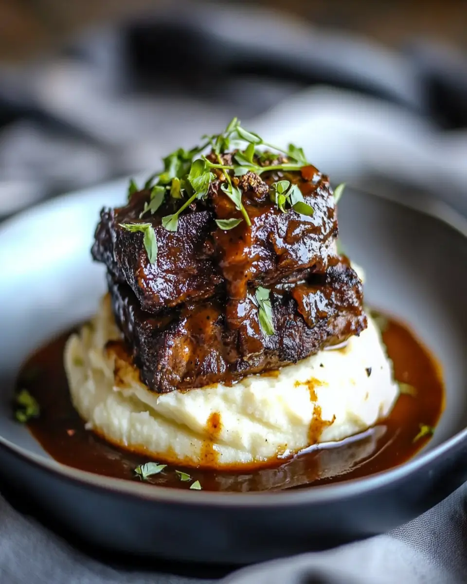 Crusty bread is another excellent option to serve alongside this decadent dish. A slice of warm baguette or artisan sourdough can be perfect for soaking up the flavorful juices from the short ribs. For a special touch, consider spreading a bit of herbed butter or a truffle-infused spread on the bread for an extra layer of flavor.