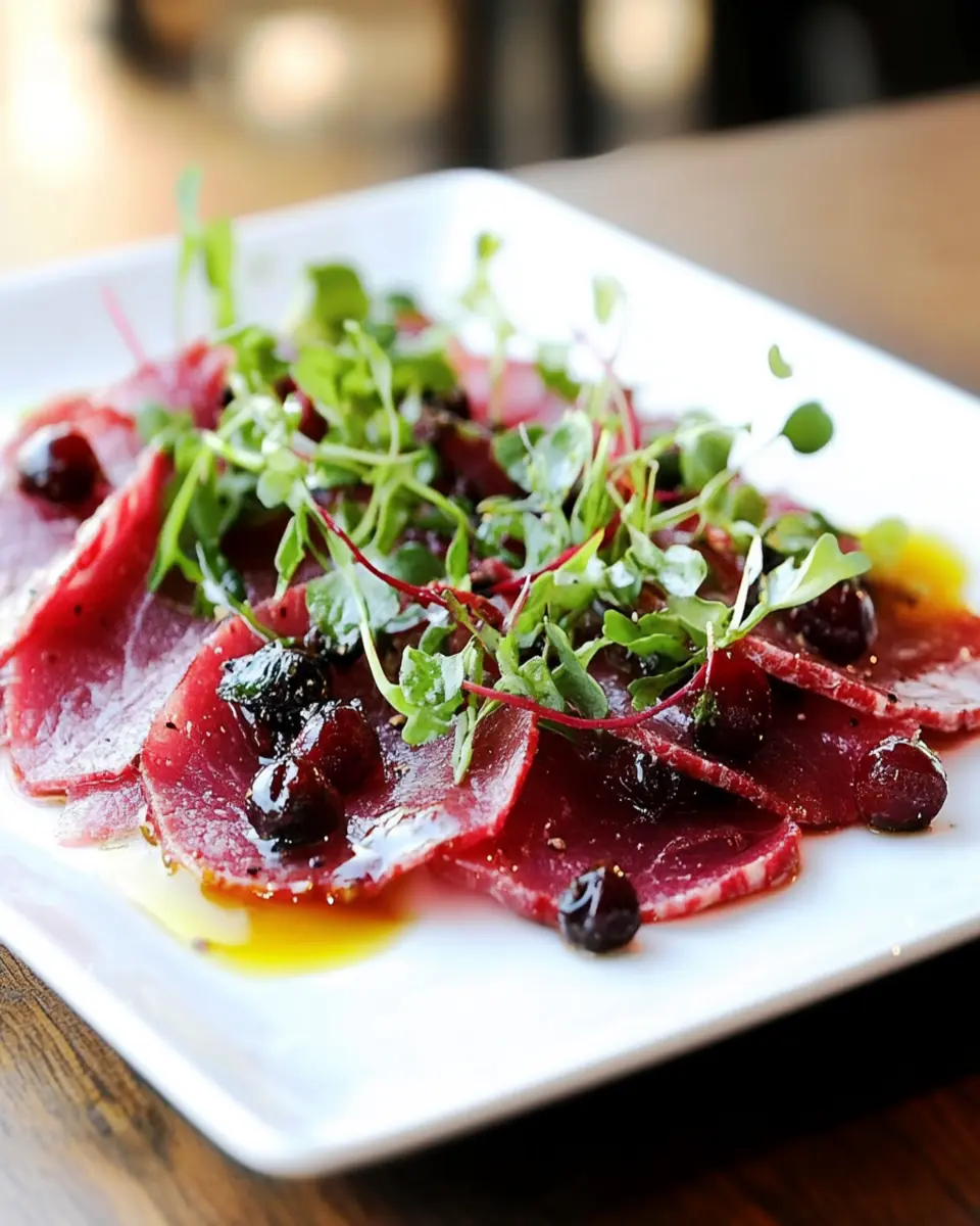 For an extra touch, you might want to add a handful of capers or a sprinkle of microgreens atop the carpaccio just before serving. These small additions not only boost the visual appeal but also add bursts of flavor that elevate the overall dish. Another idea is to drizzle a bit of truffle oil for a luxurious finish, transforming your carpaccio into a gourmet masterpiece.