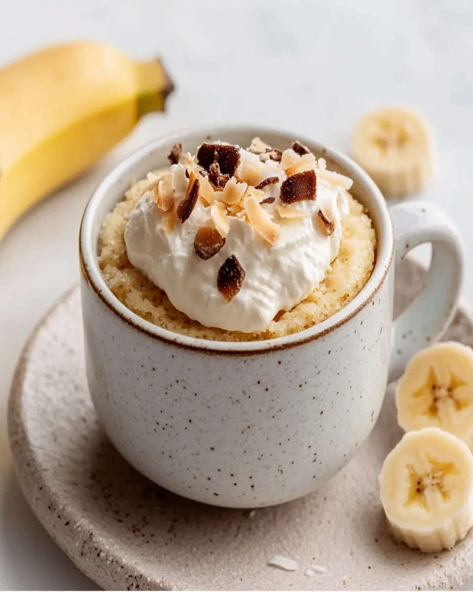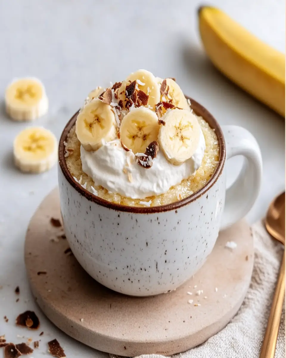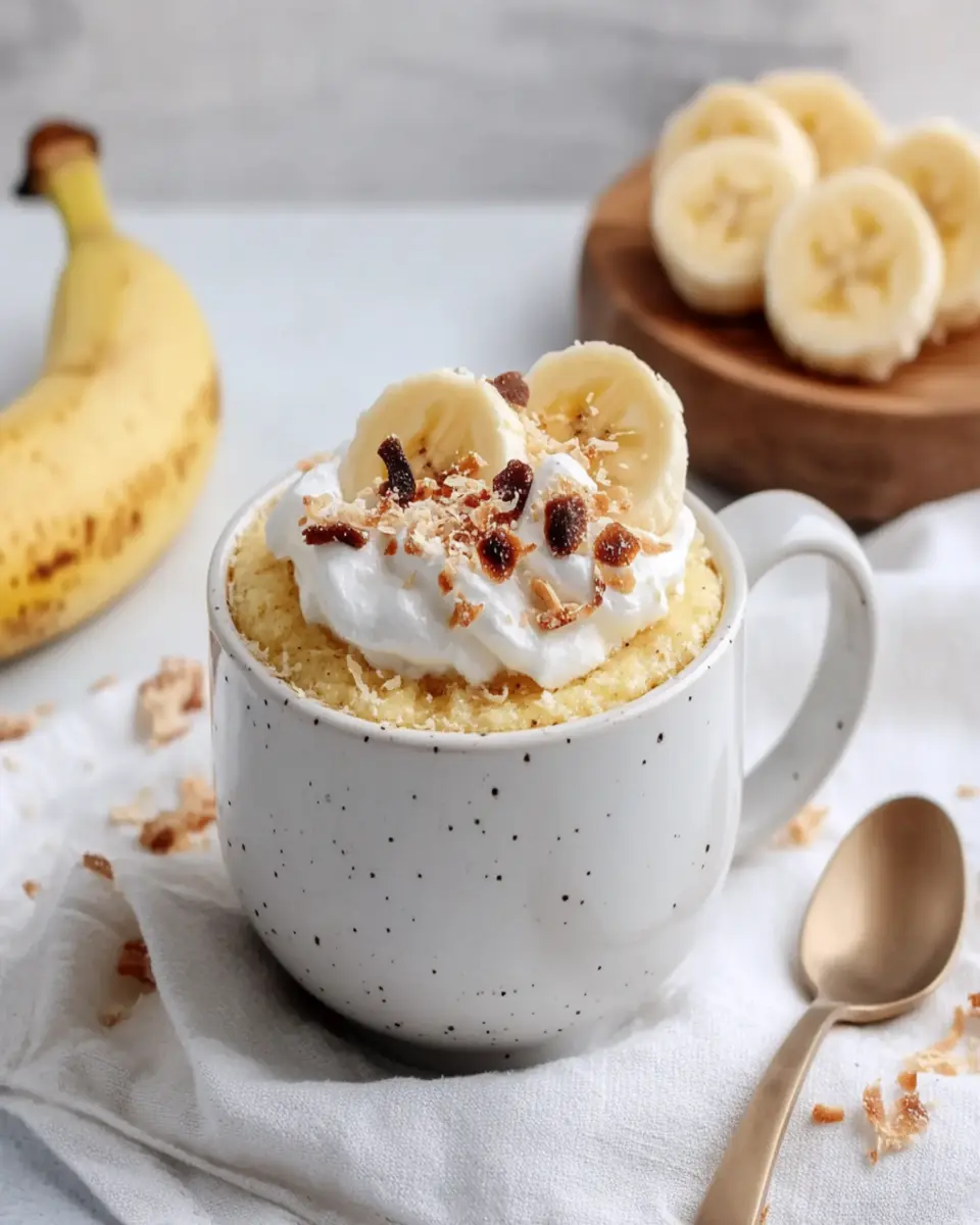 A delicious and easy mug cake made with banana and coconut, perfect for a quick keto treat.