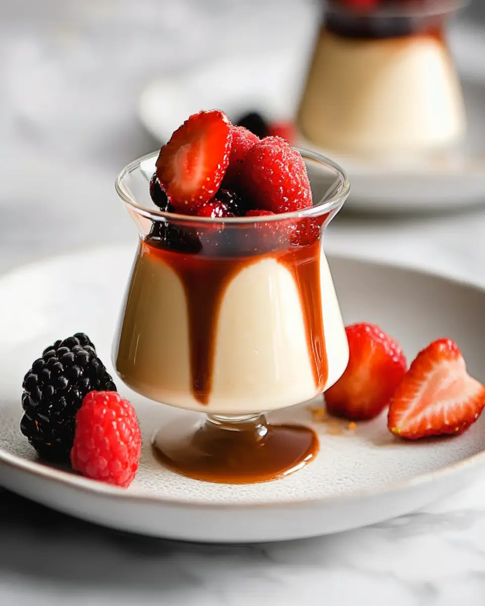 Drizzling your panna cotta with gourmet sauces can turn it into a show-stopping dessert. A rich chocolate sauce or a caramel drizzle can add depth and richness. For a touch of sophistication, a homemade espresso or coffee sauce can provide a bittersweet contrast that enhances the overall flavor profile.